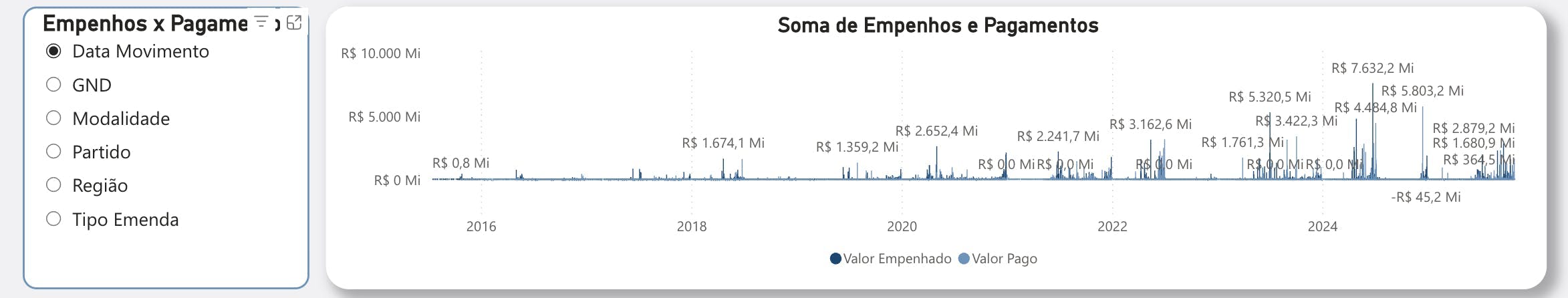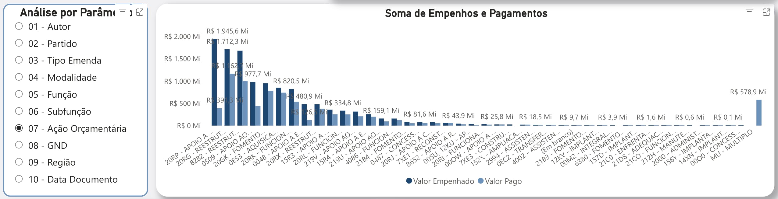 Foram adicionados os botões [COM RAP] e [SEM RAP] no painel de empenhado e pago das emendas, permitindo diferenciar o que foi pago em anos posteriores ao da emenda como Restos a Pagar.
