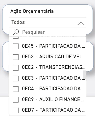 Código agregados junto aos campos 4 campos de ação programática e aos campos de classificação de Grupo de Natureza de Despesa (GND) e de Modalidade de Aplicação. Assim, o pesquisador experiente localiza rapidamente seu filtro.